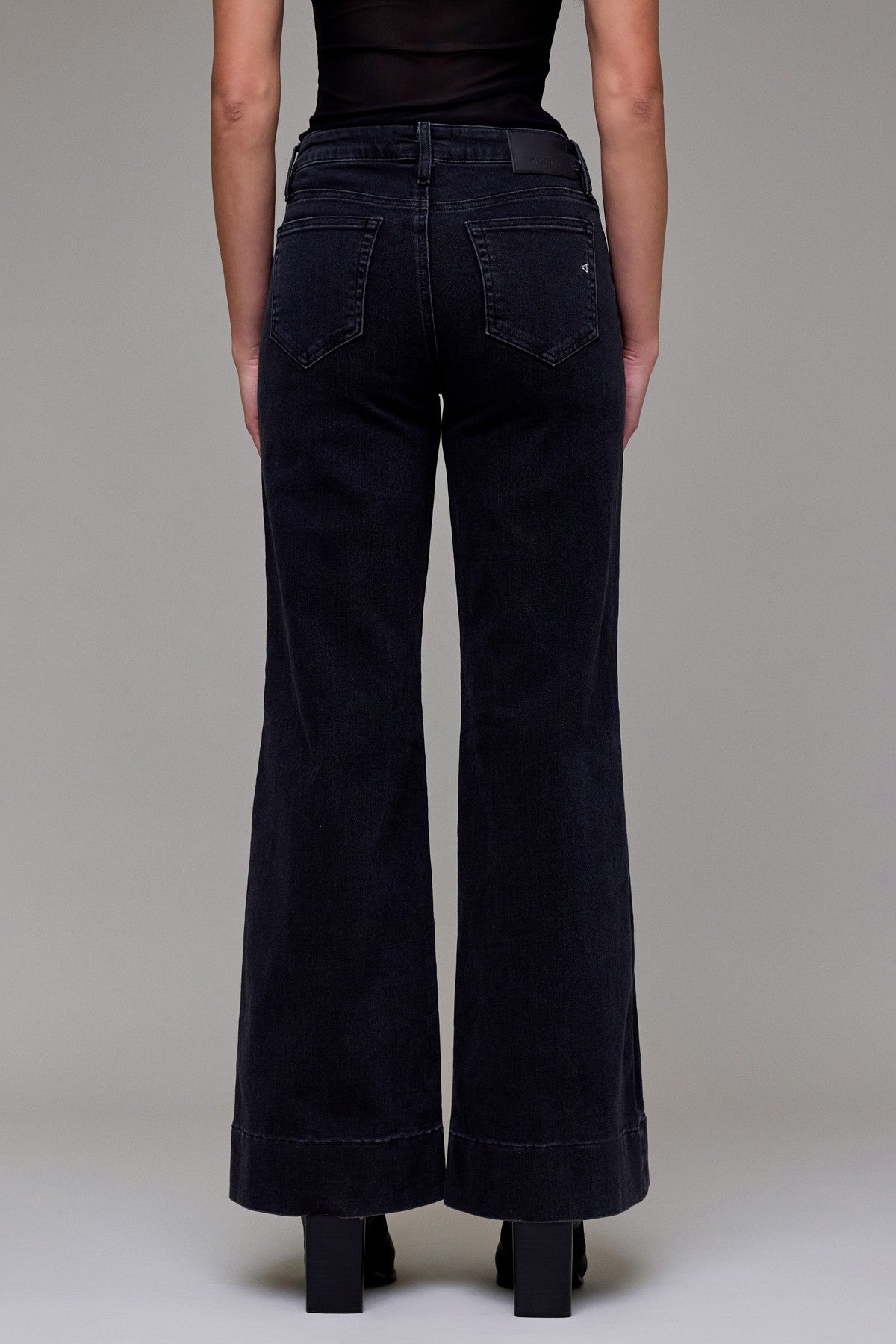 Step into style with the Hidden Happi Pintuck Flare Jeans in washed black. Featuring a flattering mid-rise fit, these jeans combine comfort and flair with their playful pintuck accents and flared legs. Perfect for adding a fun, modern twist to your wardrobe while keeping things effortlessly cool.
