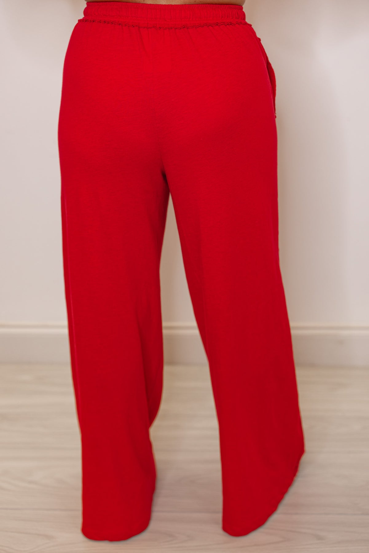 red cotton knit wide leg lounge pants