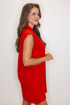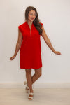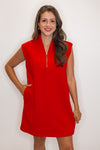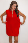 Unleash your carefree spirit with this Red Knit Dress! This vibrant babe features a unique v neckline with a zipper closure, perfect for standing out at any event. Sleeveless and complete with convenient side pockets, it's both stylish and functional. Say goodbye to boring outfits and hello to Carefree Days!