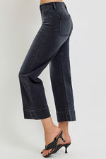 These Risen Jeans are so cute! With washed black denim, 5 pocket style, and trendy wide legs, you'll be ready for anything — whether you dress them up for a night on the town, or wear them casually for a day out. You'll feel fabulous either way!