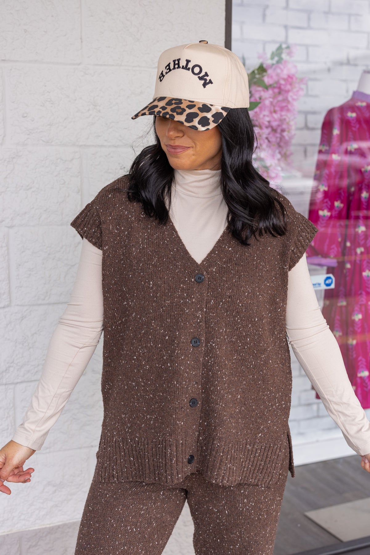 Step into true trendy comfort with the Favorite Story Chocolate Sweater Vest! Featuring a button front closure with v neckline and ribbed bottom hem, all in a sleeveless design with ribbed trim at shoulders. The relaxed fit and versatile style is equal parts cozy and cool. Crafted from soft sweater knit, it's perfect for lounging or running errands in style. Shop the matching pants here for the cutest outfit around!