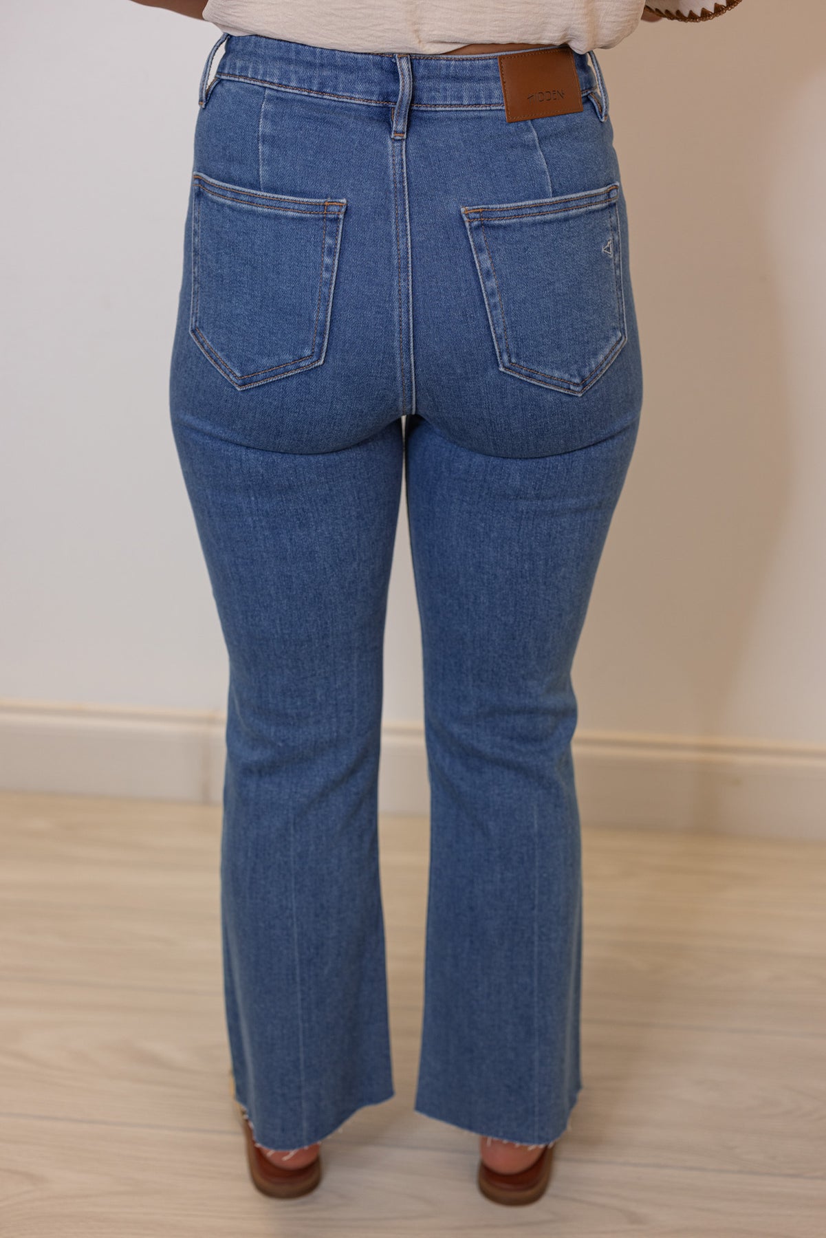 These Happi denim jeans from Hidden are a must have! Featuring a crop flare leg, square patch front pockets, and a high rise waist. Love these babes paired with sneakers, or dressed up with heels!