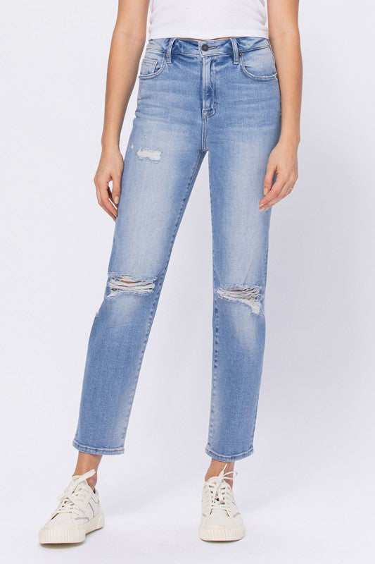 These light wash jeans from Hidden Jeans are a must-have! Featuring a classic stretch straight leg, high rise waist, and distressing. So cute! Pair with your favorite tank top or graphic tee for a super trendy look!