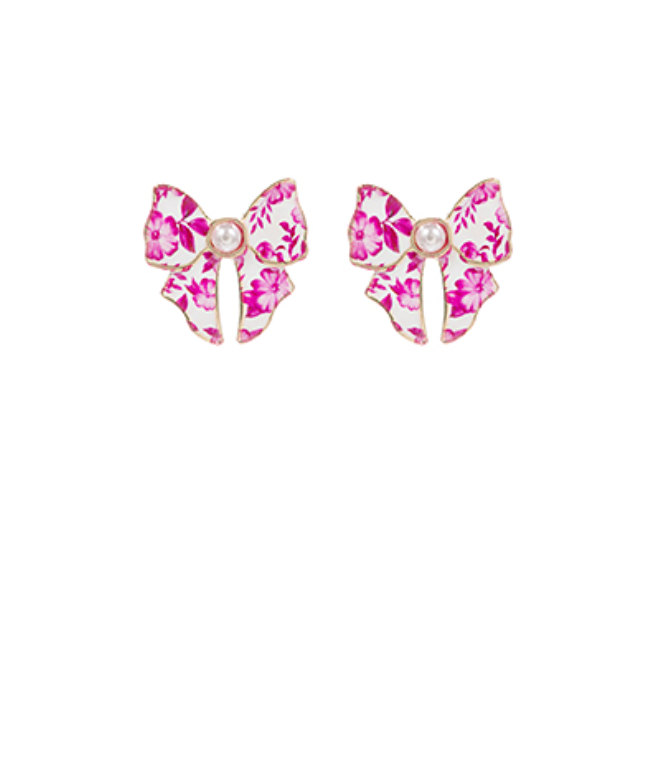 Pink Chinoiserie Bow Earrings