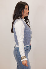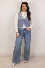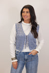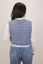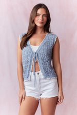 Add some boho-chic style to your wardrobe with our Scalloped Crocheted Blue Vest. Perfect for layering in all seasons, this vest features intricate crochet detailing with a trendy scalloped hem and a self tie closure.