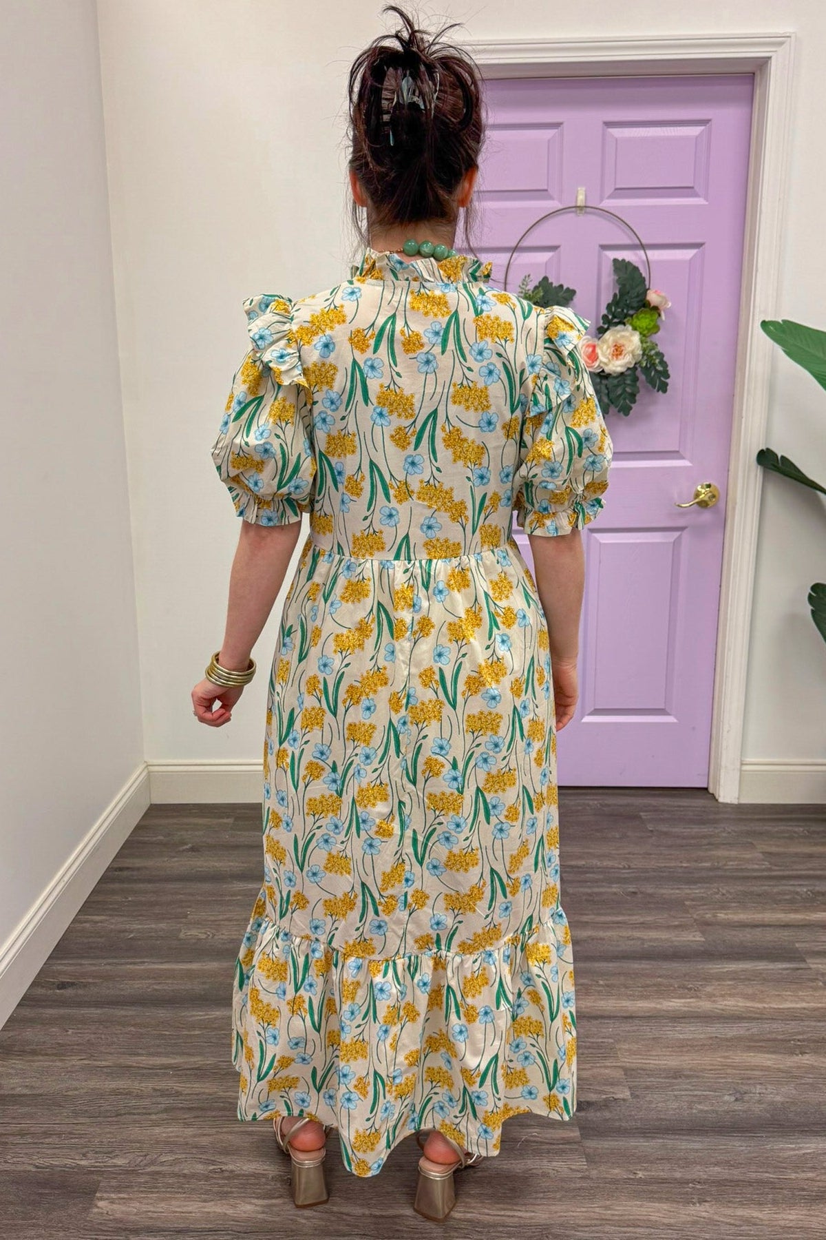 Beautiful Blooms Yellow Midi Dress