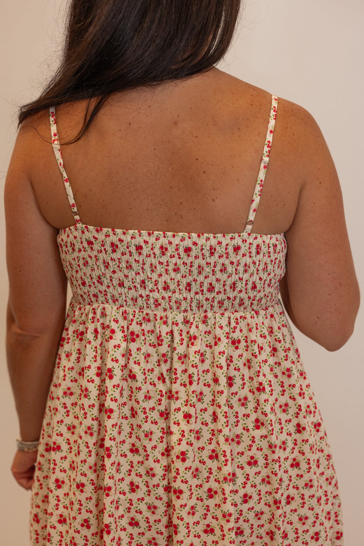 Be the envy of the garden party in this Floral Bow Cream Midi Dress! Cream fabric with hot pink and red floral print is perfect for any summer event. The sleeveless style with spaghetti straps and a large decorative bow tie across the bodice will have you feeling effortlessly elegant and playful at the same time!