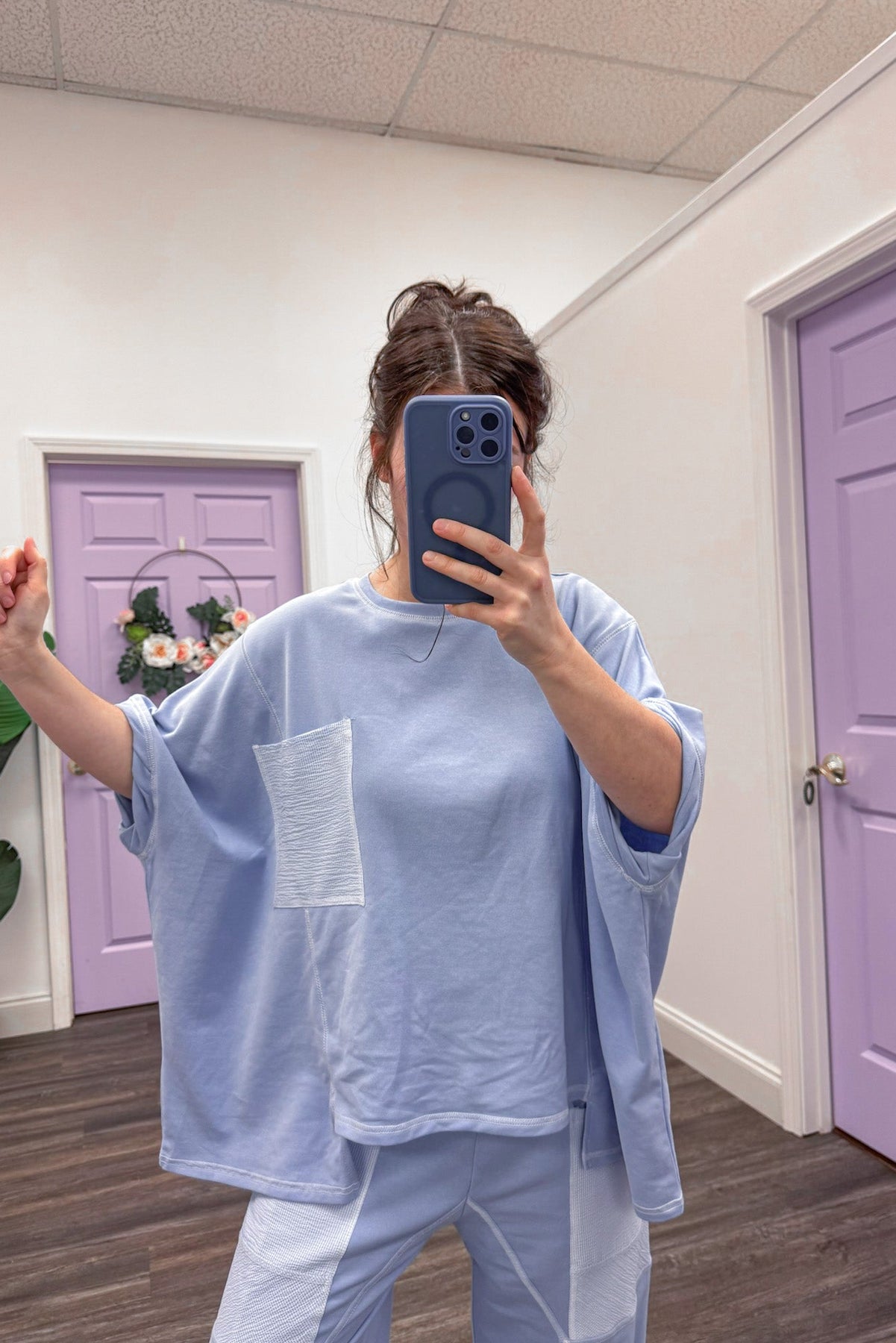 Introducing the Seersucker Touch Blue Matching Set—your new spring essential! This breezy number features a charming seersucker pockets and is crafted from ultra-soft, lightweight cotton that feels like a cloud against your skin. Perfect for those in-between weather days! Top features an oversized fit and the barrel pants features your fave elastic waist with drawstring!