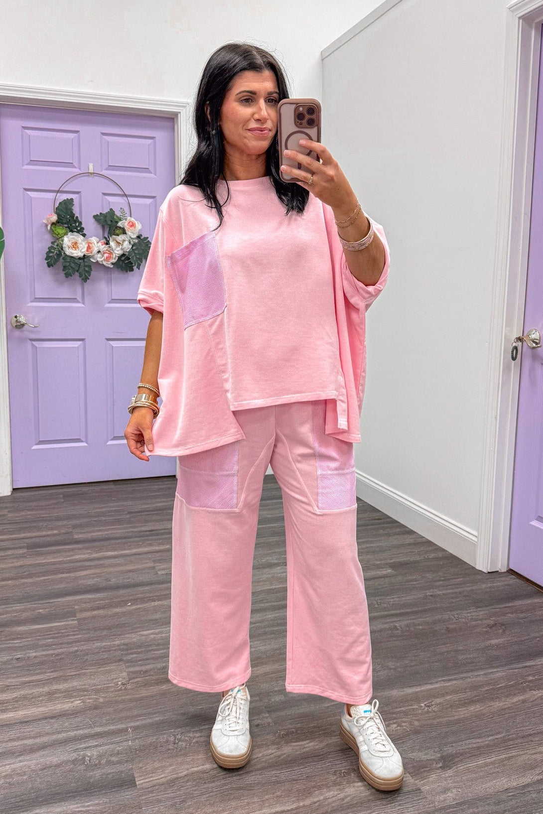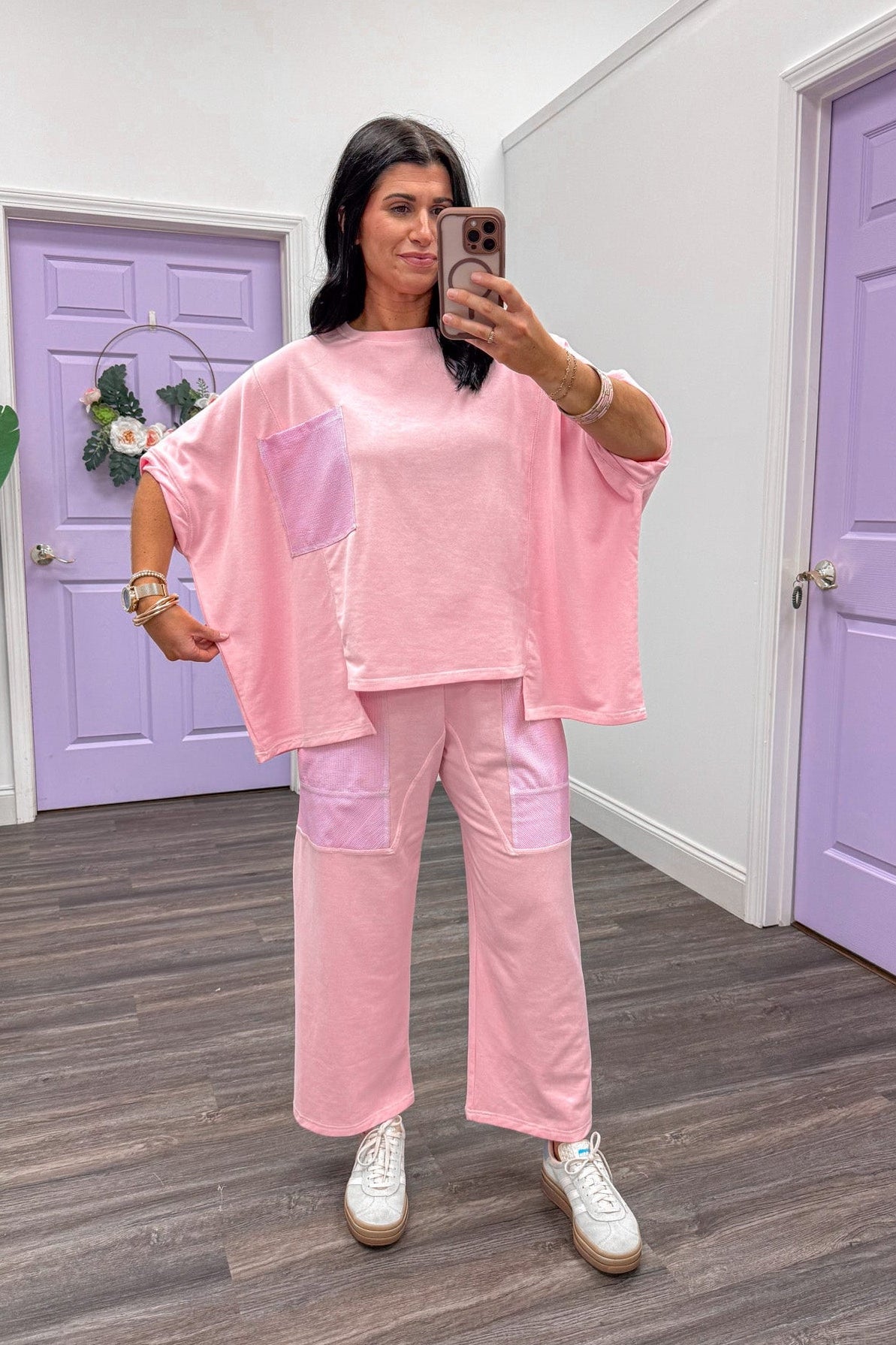 Introducing the Seersucker Touch Light Pink Matching Set—your new spring essential! This breezy number features a charming seersucker pockets and is crafted from ultra-soft, lightweight cotton that feels like a cloud against your skin. Perfect for those in-between weather days! Top features an oversized fit and the barrel pants features your fave elastic waist with drawstring!