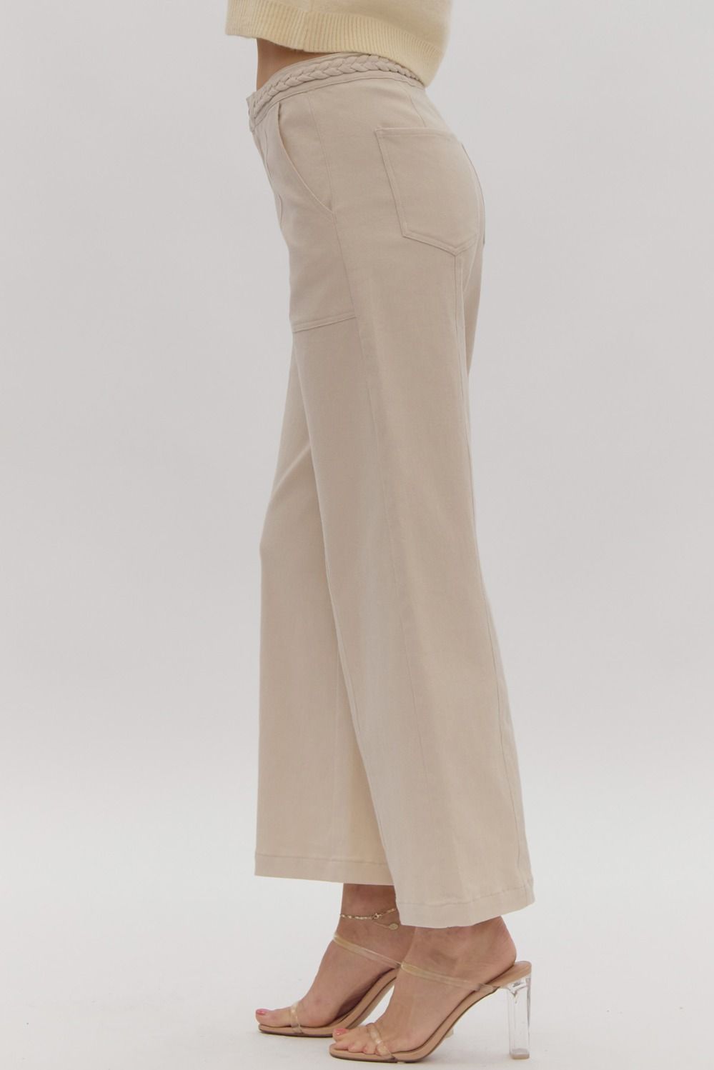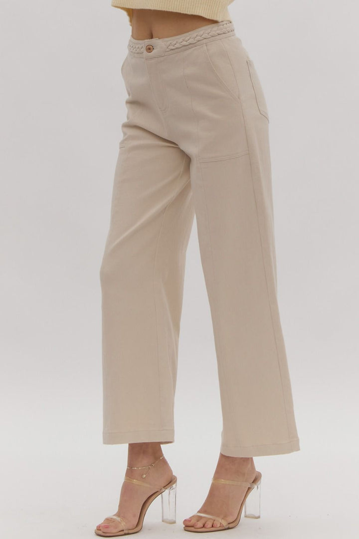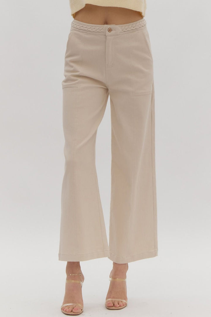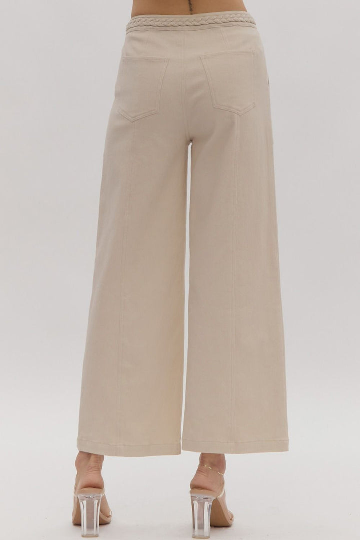 Look trendy and stylish in these Braided Fave Denim Pants! Featuring a button and zipper front closure, and cropped wide legs. The braided detail at the waist is the epitome of sass - it's modern fashion meets vintage inspiration! Super cute and fun! Dress them up with heels and a bodysuit, or wear casually with sneakers and a tee.