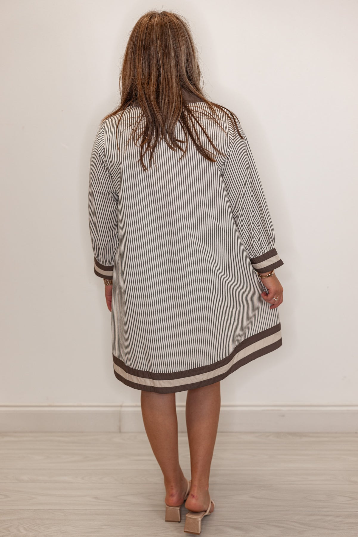 Embrace whimsy in the Enchanted Visions Mocha Striped Dress, featuring timeless dark mocha and cream stripes accented with dark mocha trim. The button down front and charming collar add a classic touch, while the self tie belt lets you create a playful, flattering silhouette that moves with you. Perfect for turning everyday moments into magical ones!