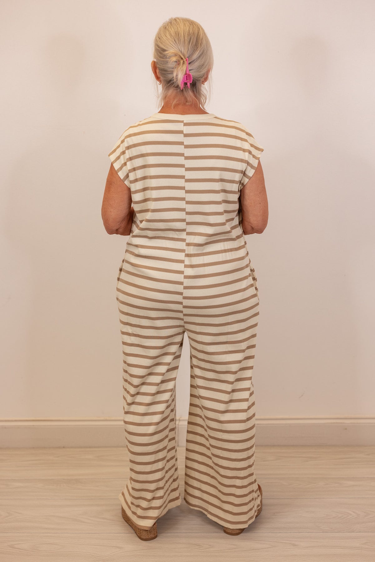 Oh the Striped Perfection of this adorable knit jumpsuit! Featuring a button front bodice, crew neckline, and short sleeves. Get ready to trend in total comfort - just grab your fave sneakers and go! Shop the look: Denim jacket
