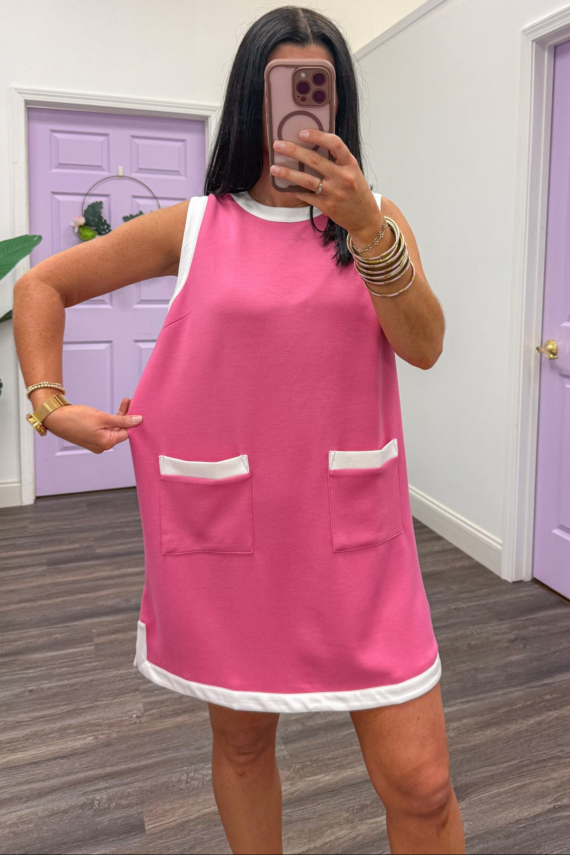 Channeling timeless elegance with a modern twist, the Mod Bardot Pink Mini Dress brings retro-chic sophistication to your everyday wardrobe. This structured mini features a flattering silhouette inspired by 1960s fashion icons, perfect for date nights, brunch outings, or elevated casual occasions. The bright pink hue pairs effortlessly with statement jewelry and flats or dress down with your favorite sneakers. Crafted for comfort and style.