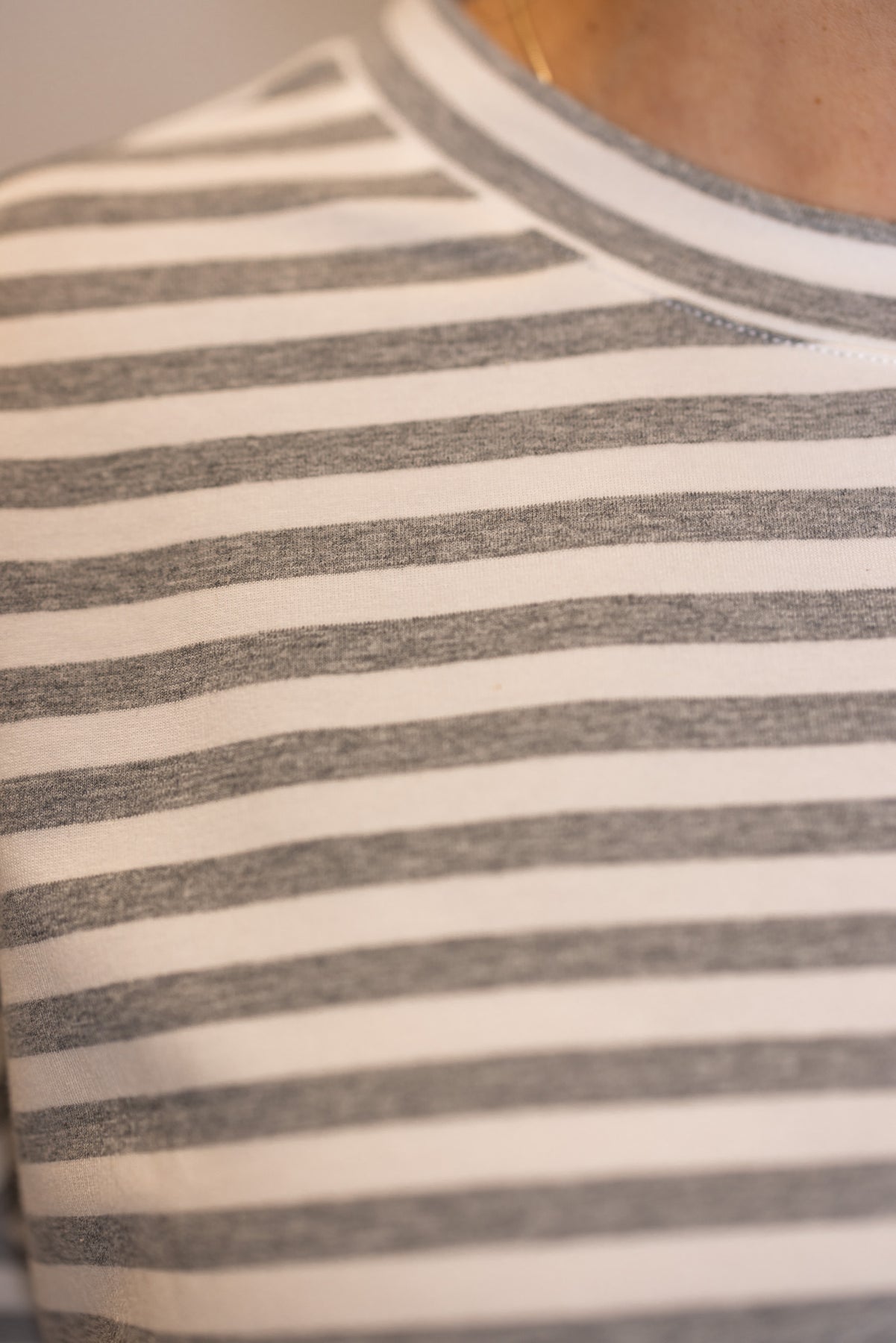 Women's grey lounge top showing striped pattern