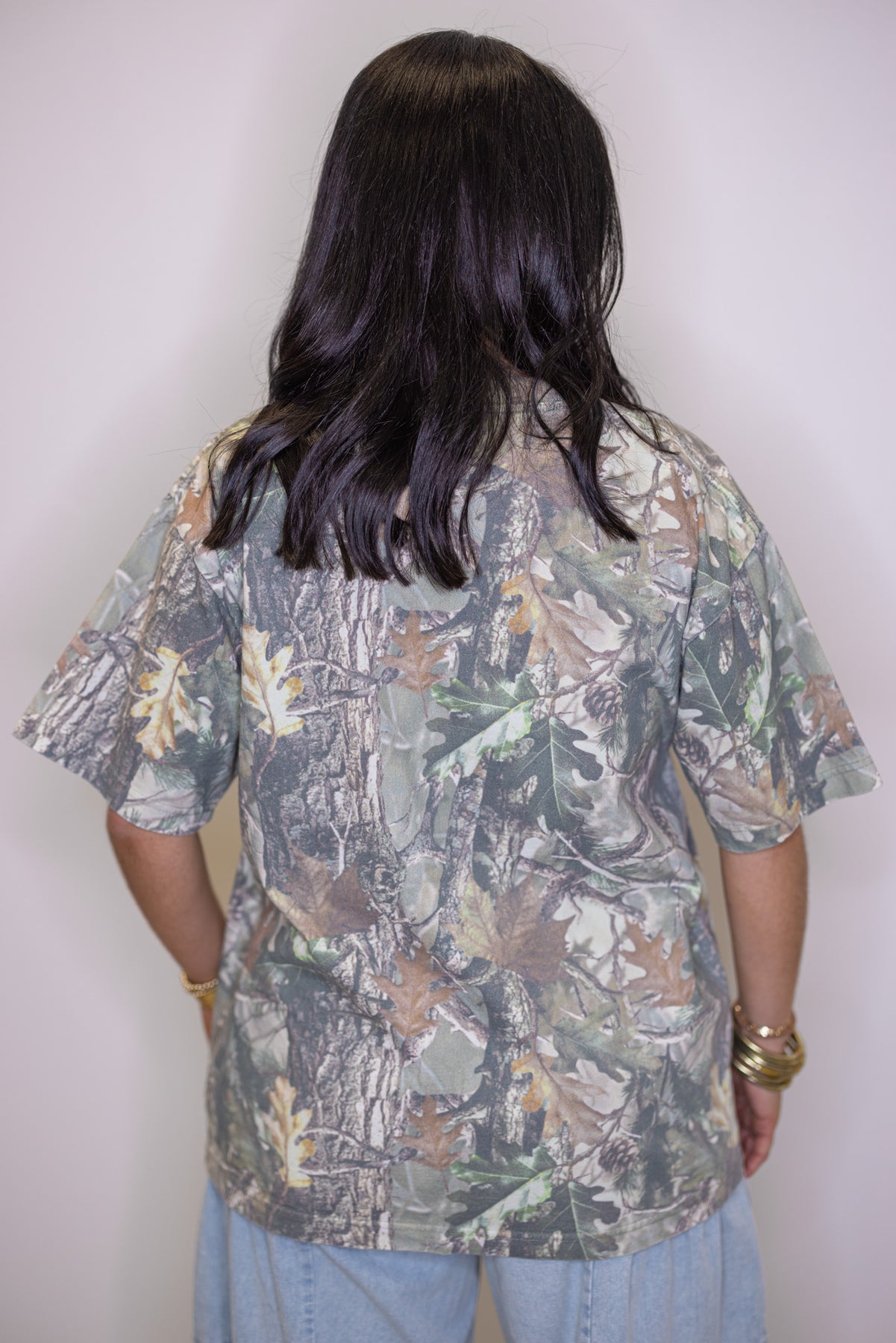 Heavyweight oversized green camo tee in our favorite design - Jesus Loves You period. The most important part is the period, it's meant to end the statement so there's no room for "if", "and's", & "but's." Nothing but LOVE! Shop the look: Tiered Ruffle Chambray Pants