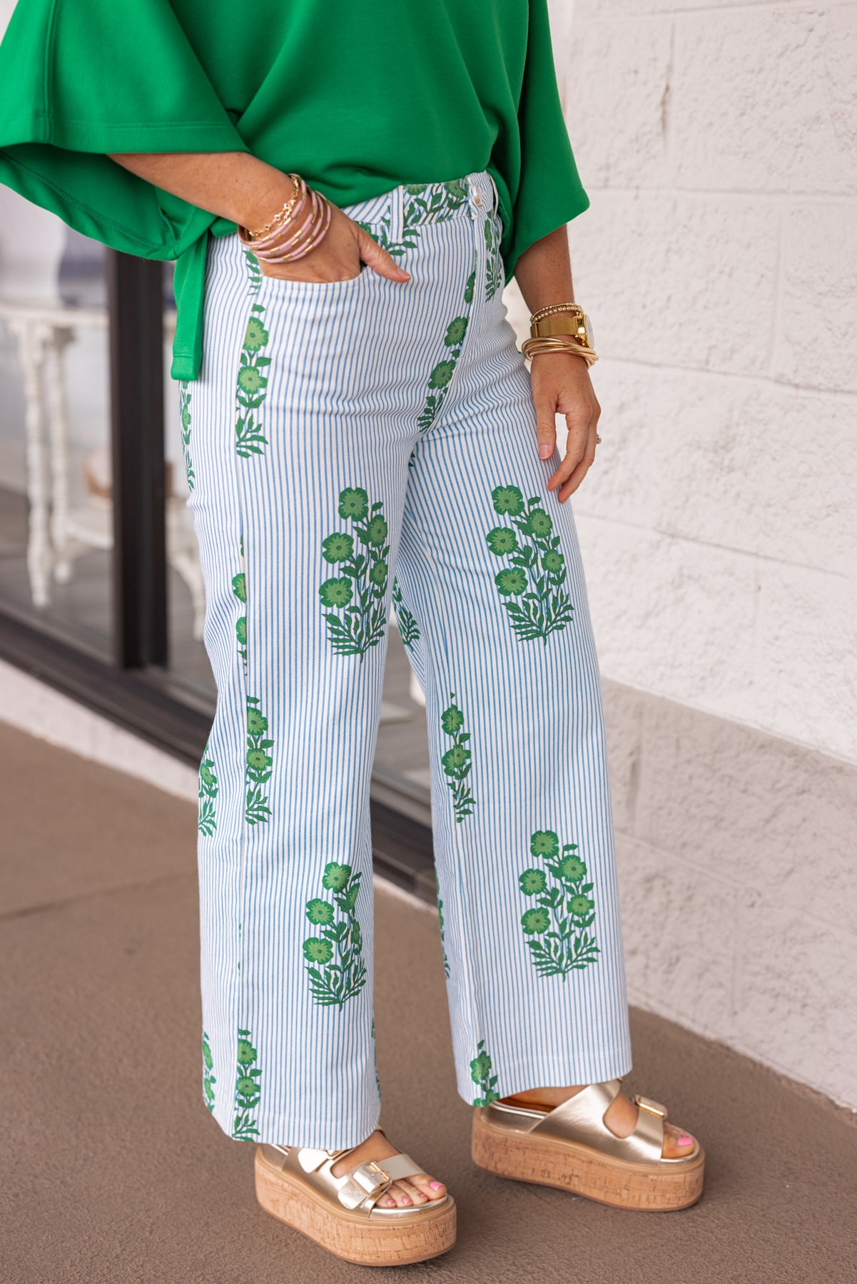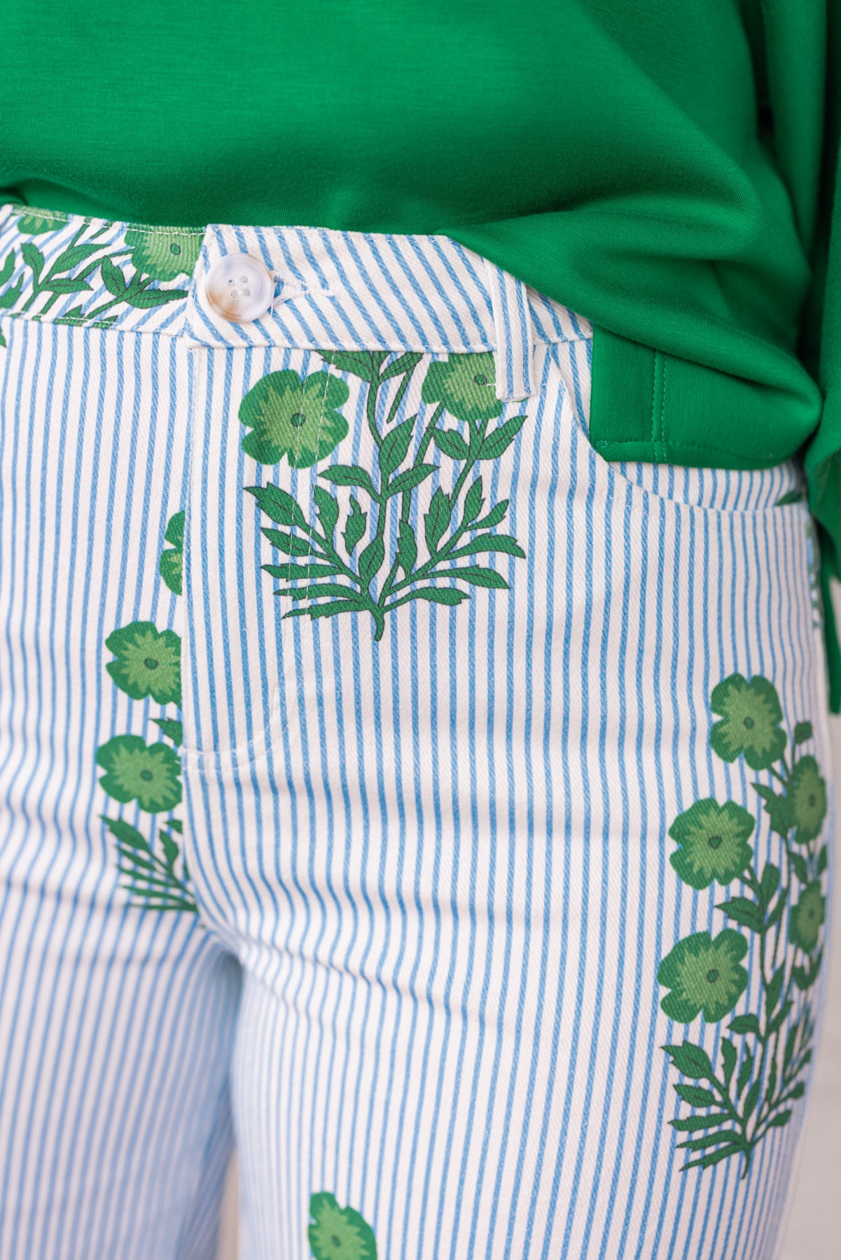 We know y'all love Entro pants so we had to bring in these babes for Spring! We love the blue and ivory stripes with the green floral print! These are your favorite lightweight twill denim that are so comfy! Pair with the matching green top HERE!