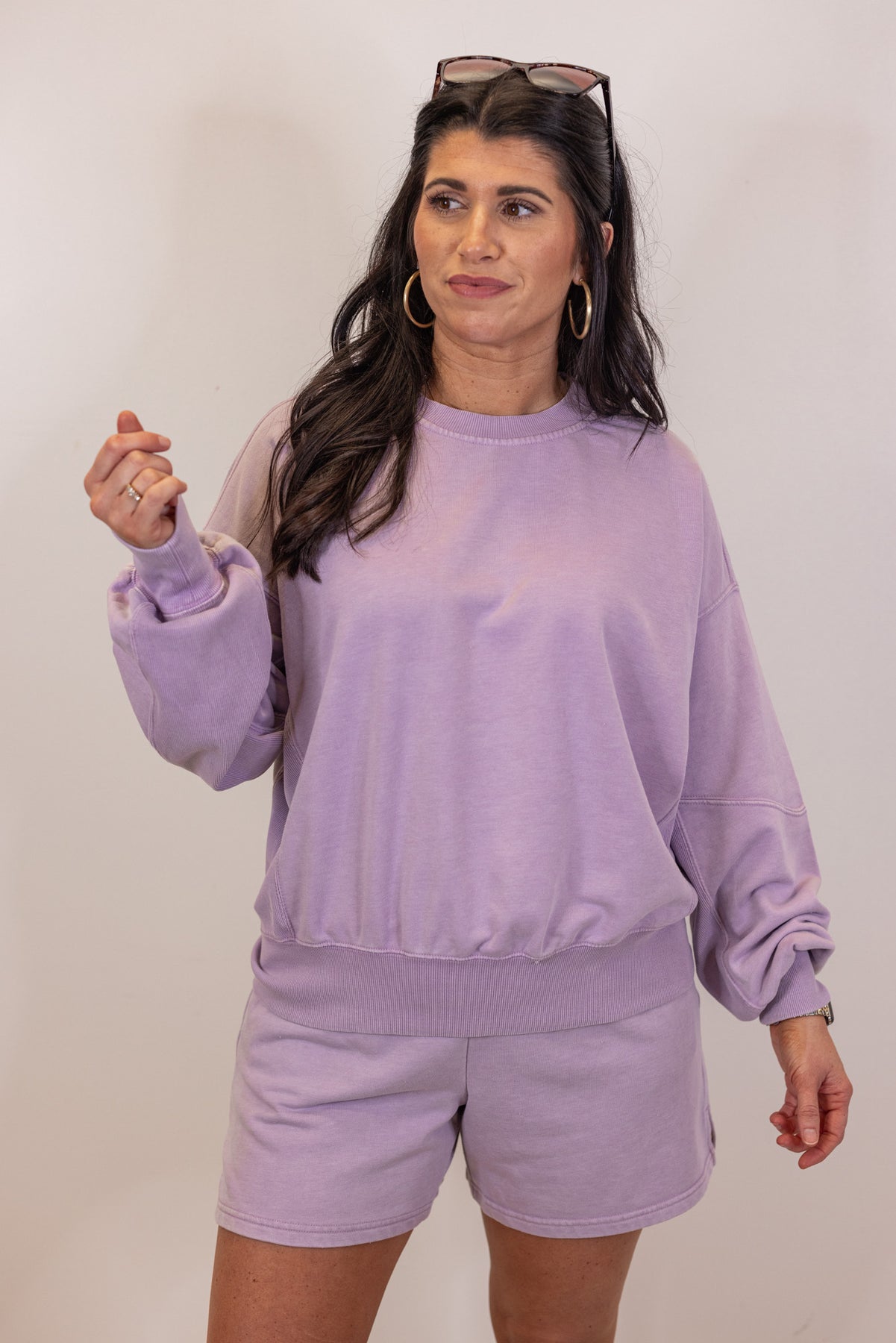 Upgrade your loungewear with our Classic Perfection pullover and matching short set. Made from mineral washed French terry knit fabric, this relaxed fit duo offers unmatched comfort and effortless style. Featuring reverse seam details, ribbed trim, and a versatile elastic waistband, it's perfect for cozy days or casual outings!