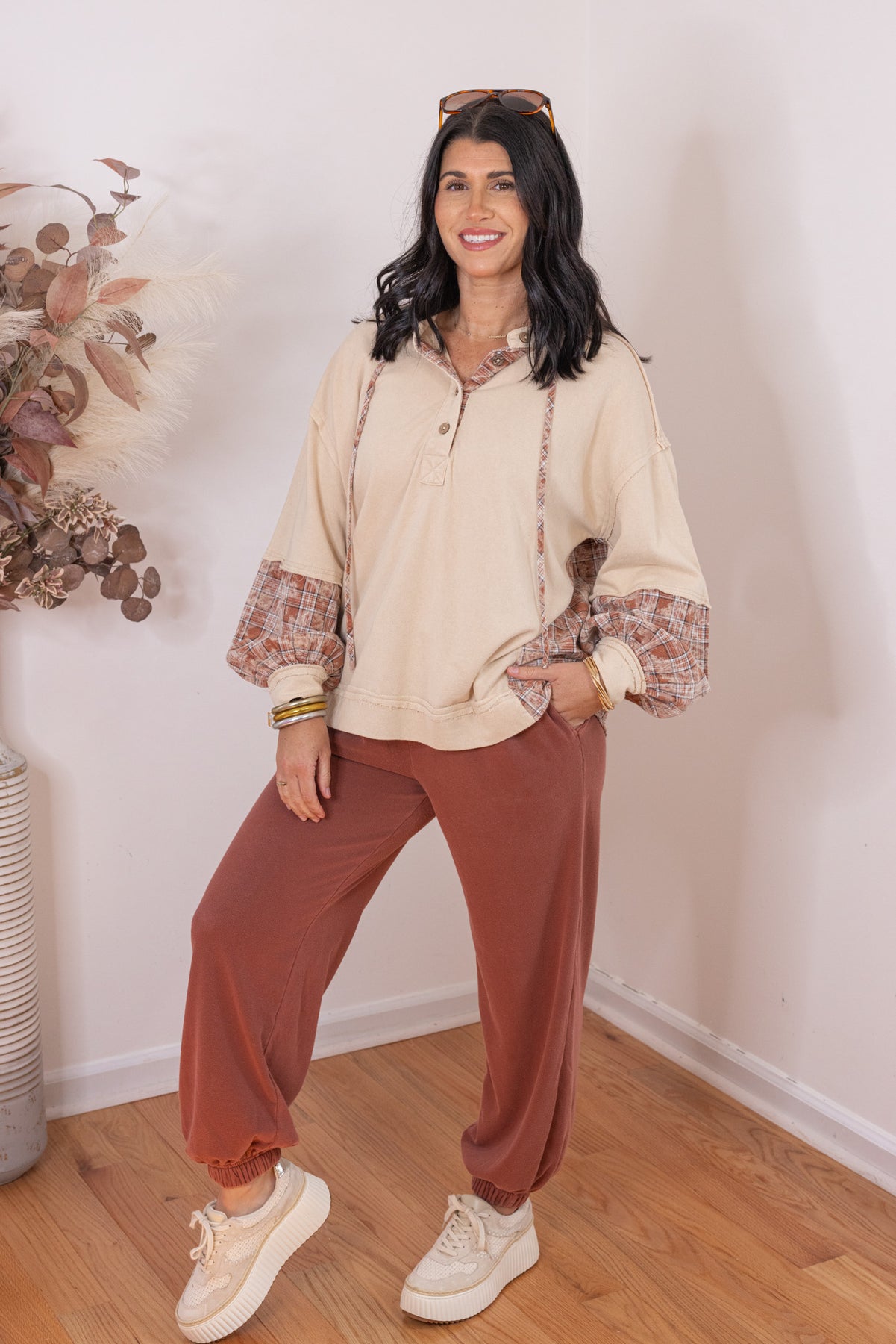 Step into true comfort with these Saturday Adventures Washed Terra-cotta Joggers, featuring a relaxed wide leg silhouette with an elastic cuffed ankle that's equal parts cozy and cool. Crafted from soft french terry knit, they're perfect for lounging or running errands in style. Shop the look: Pullover Hoodie