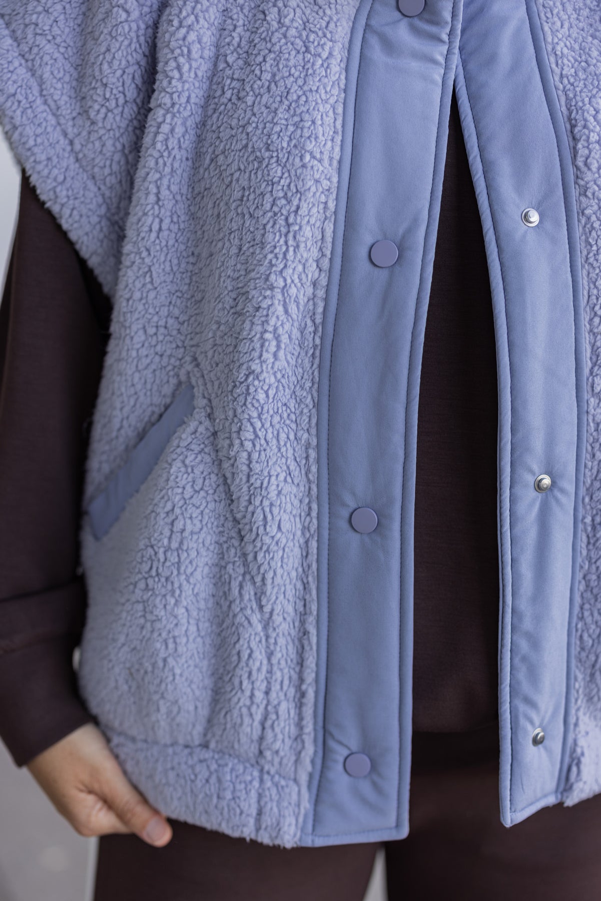 Snuggle up in warmth and style with the Sherpa Season Light Blue Vest! Featuring soft sherpa fabric, a snap front closure, and playful contrasting fabric trim details. This versatile vest adds a cozy, chic layer to any outfit. Perfect for those crisp days when you want comfort and cuteness all in one! Shop the look: brown scuba set