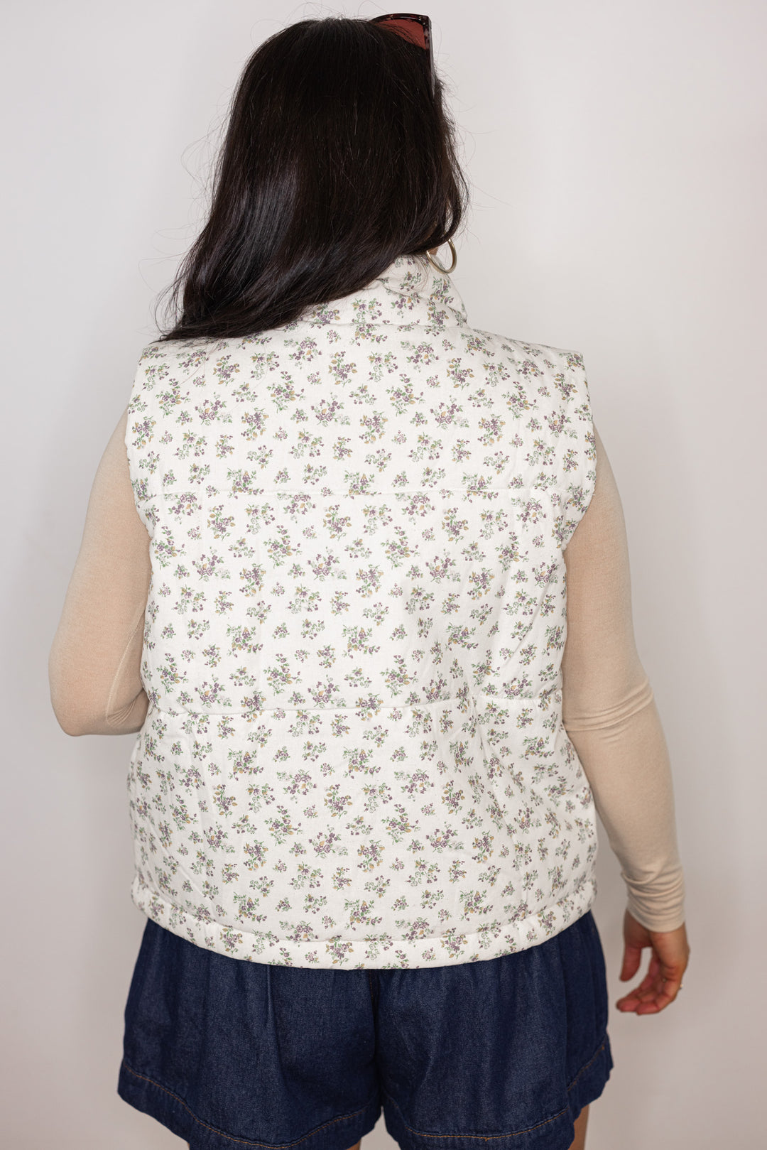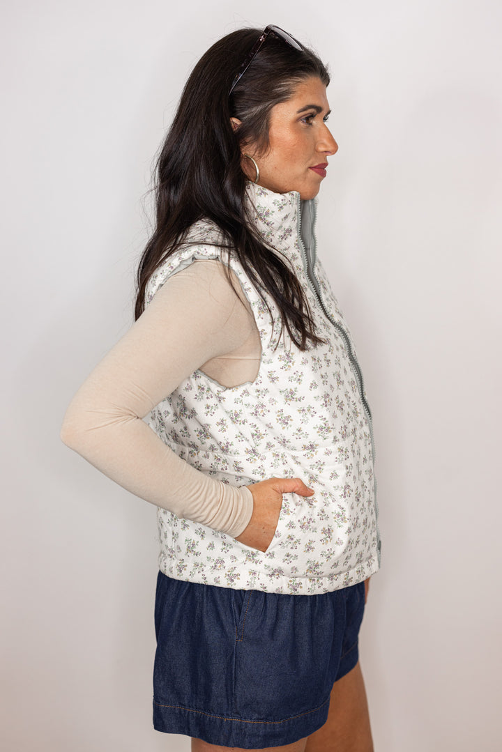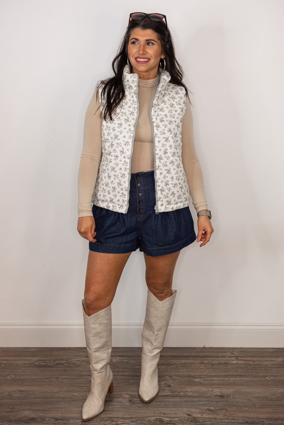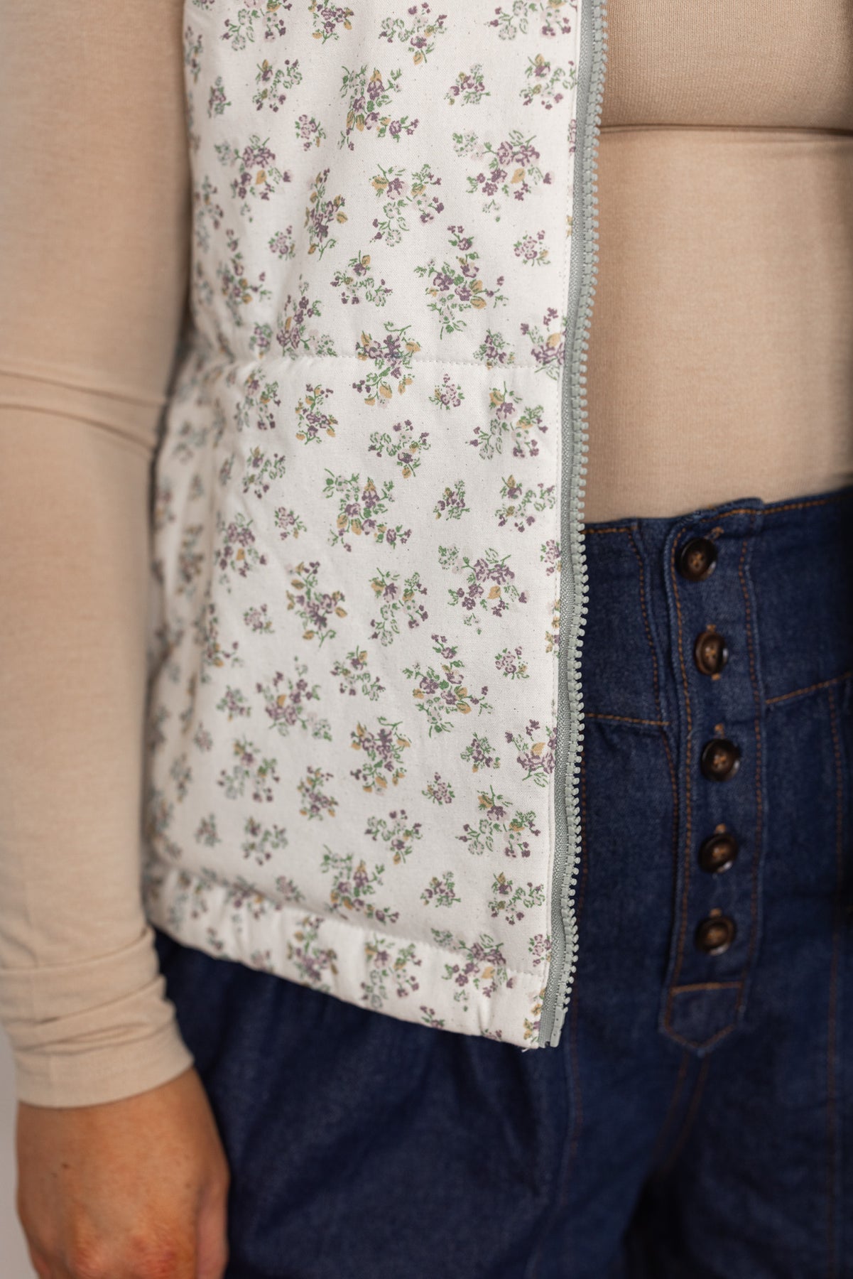 This vest's cream floral print will make any outfit blossom, while its sage green reverse side is perfect for when you're feeling a little more subtle. The zipper front closure adds a touch of convenience to this versatile piece. Shop the look to create this same trendy chic outfit: Top | Shorts | Boots