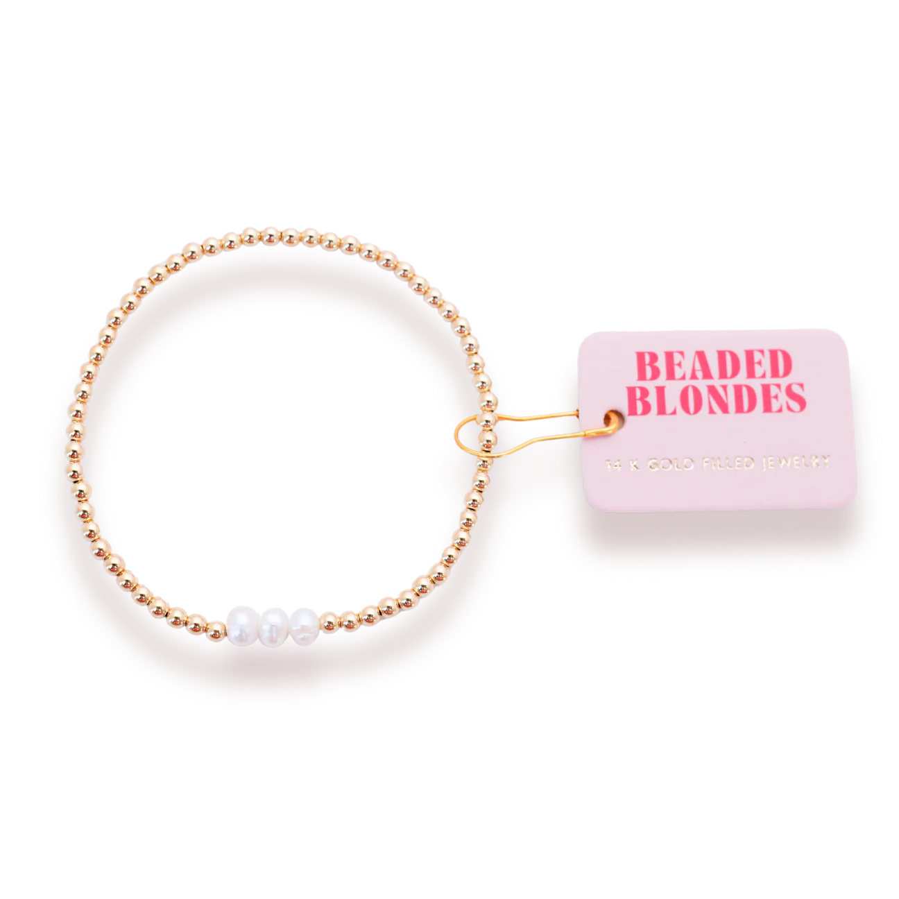 Introducing the Beaded Blondes Harper Bracelet, a stunning mix of 3mm beads and lustrous freshwater pearls. Embellished with 14K gold fill, this bracelet exudes sophistication and elegance. Elevate your style with this exclusive piece, designed for those who appreciate the finer things in life.