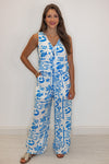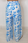 Get ready to dream of the beach with our Castaway Bay Blue Print Pants! Featuring a blue beach print on off white fabric, a drawstring elastic waistband, and wide legs. Perfect for adding a touch of Summer to any day out! Shop the matching top here for the dreamiest outfit around!