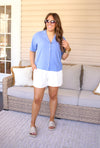 Rock a timeless look with our Classic Cutie Blue Top. This staple piece will stay in your wardrobe for years to come. The fit is phenomenal, making you look and feel confident. Say hello to your new favorite top!