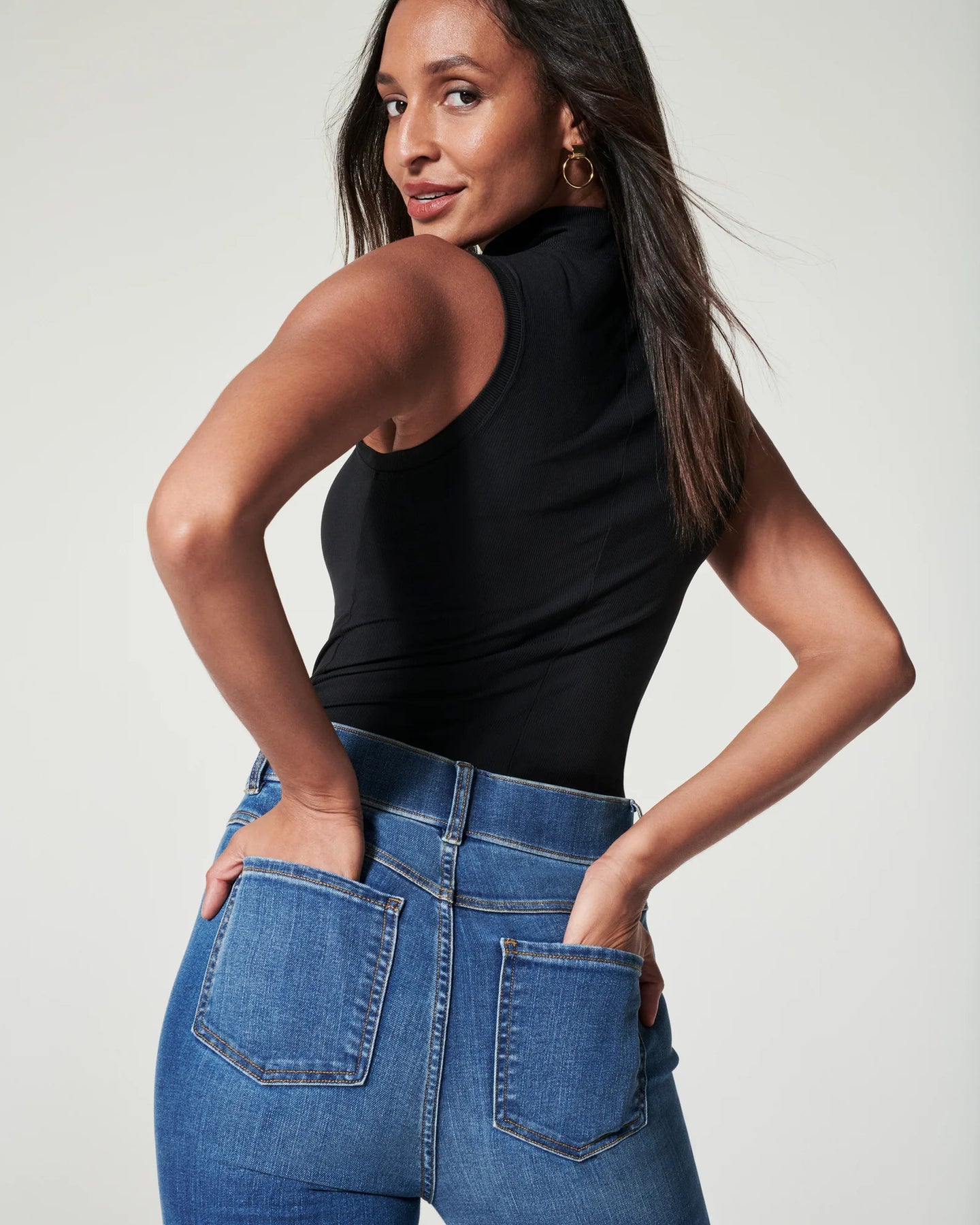 These 70s inspired flare jeans are the perfect wear everywhere with anything style. Designed with premium stretch denim, high-rise coverage and hidden core shaping technology, this jean puts a new twist on a retro silhouette.- No button or zipper, just pull on