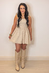 Embark on a Floral Adventure with this playful beige denim romper! Featuring a pink floral print, sweetheart neckline with ruffled straps, and a ruched front, this romper is perfect for adding a touch of whimsy to your Summer wardrobe. Get ready to turn heads in this delightful babe!