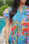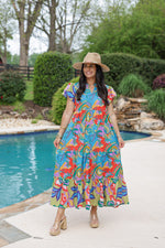 Indulge in our fave style, the Briton Court maxi Jenny Dress! With multicolor tropical print, tiered skirt, and flowy silhouette, this dress will have you feeling like a Summer goddess. The capped flutter sleeves add a touch of elegance while the empire waist flatters your figure. This Summer sensation also has the fun detail of parrots mixed into the tropical print on the bottom hem tier. Too perfect!! Shop the look: Shoes