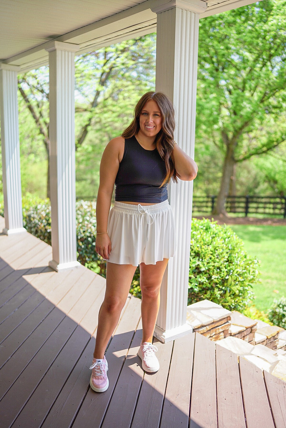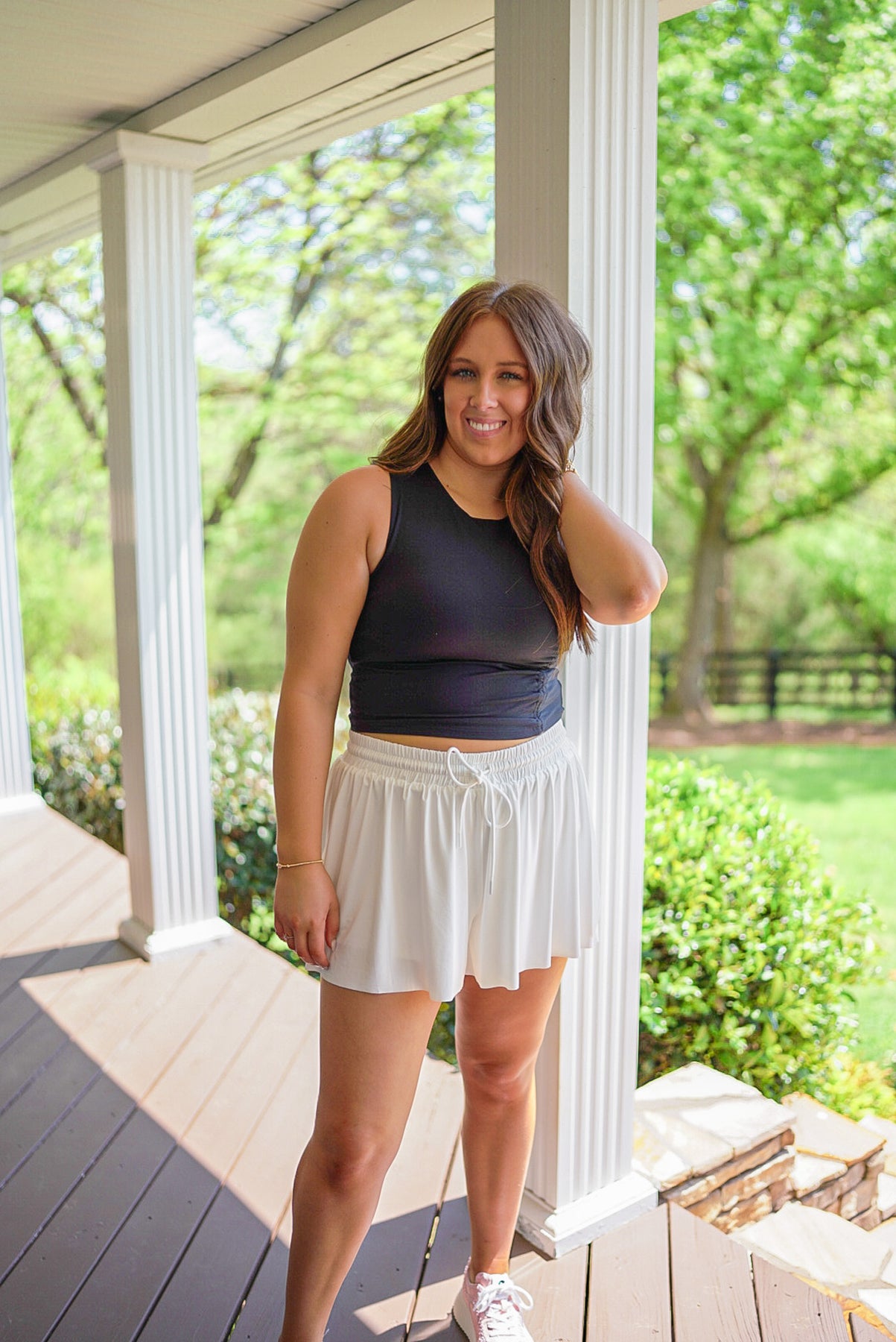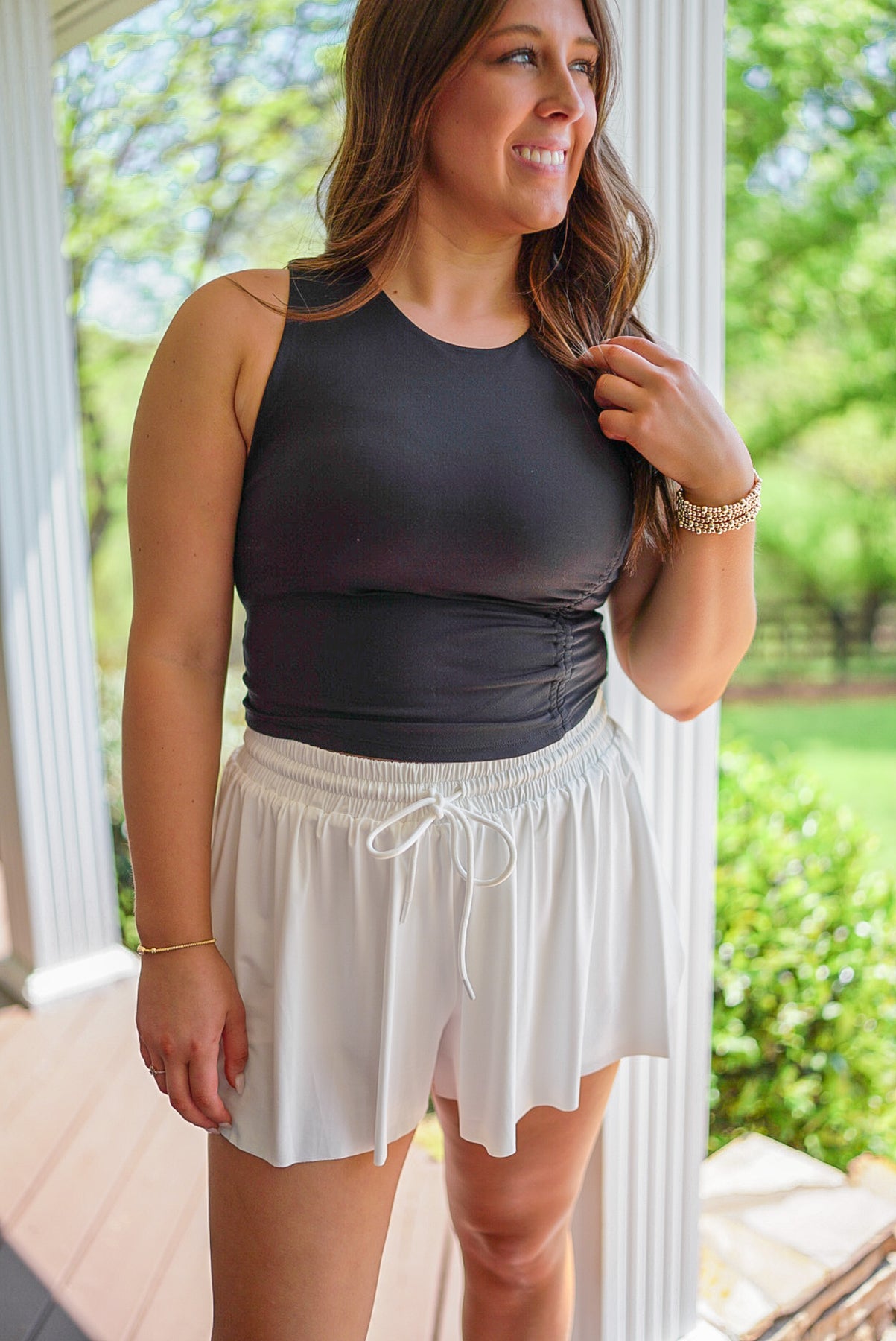 Sleeveless crop top with full built-in support, removable pads, and chic asymmetric cinch detail. So comfy and chic you'll want to wear it everyday. The perfect addition to your wardrobe! Pairs perfectly with our Activewear Flowy shorts!