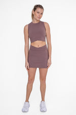Mono B Venice crossover waist active skort in deep taupe