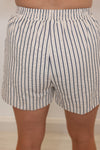 Get ready to strut your stuff in the Perfect Stripes Ecru Textured Shorts! Made with textured ecru fabric and accented with navy stripes, these shorts are super cute and trendy. Featuring an elastic waistband with drawstring and front pockets. So adorable! Shop the matching top here for an adorable striped outfit that's perfect for any occasion!