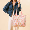 Say hello to effortless style with our Everyday Quilted Tote Bag! Crafted from soft, quilted fabric, this tote is as chic as it is functional. Featuring a secure zipper closure and a signature darling wipeable interior lining, it’s the perfect mix of organization and elegance. The pass-through trolley sleeve makes travel a breeze, while the spacious interior holds everything you need for a busy day. Whether it’s for work, play, or a weekend getaway, this tote is your go-to for everyday adventures.