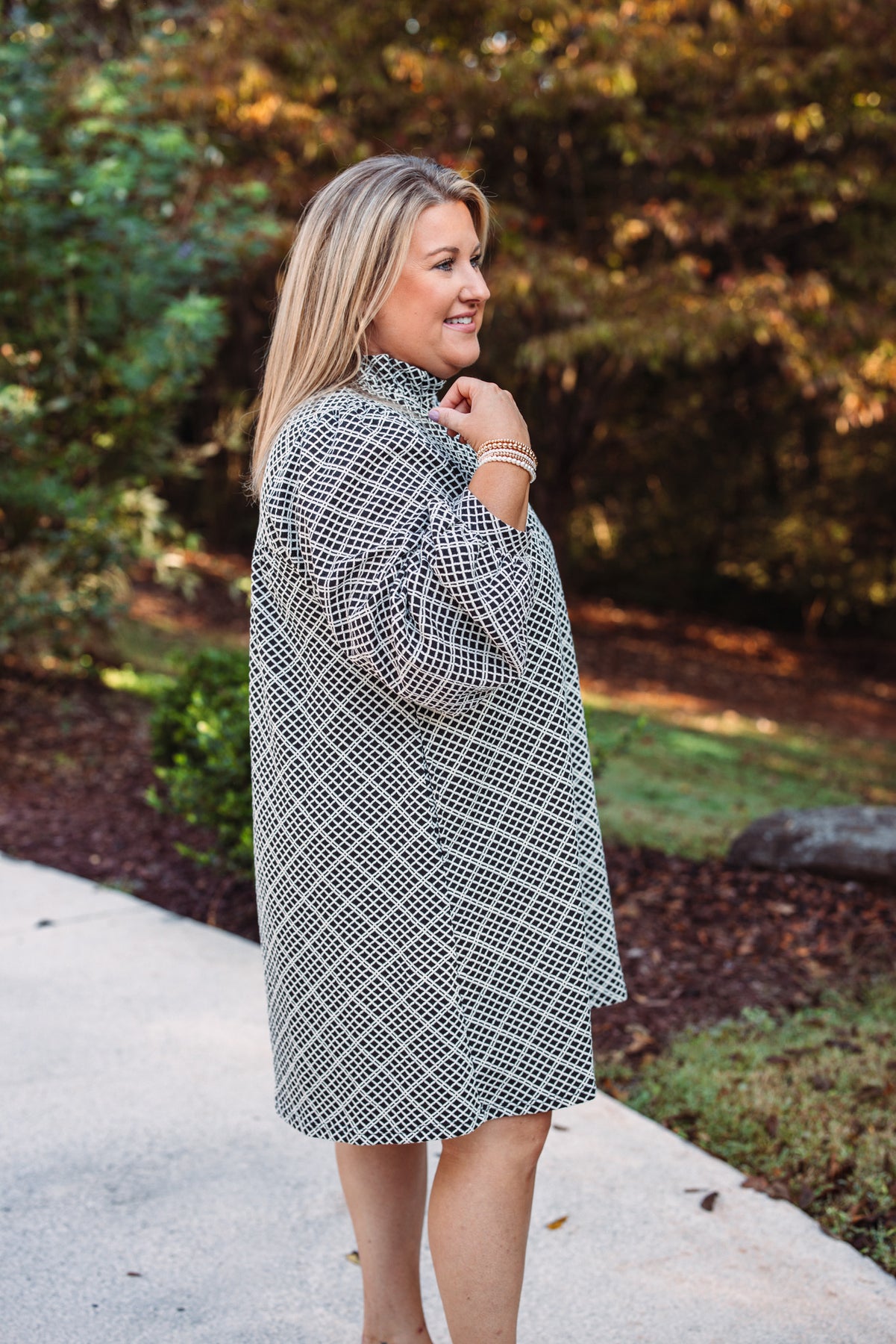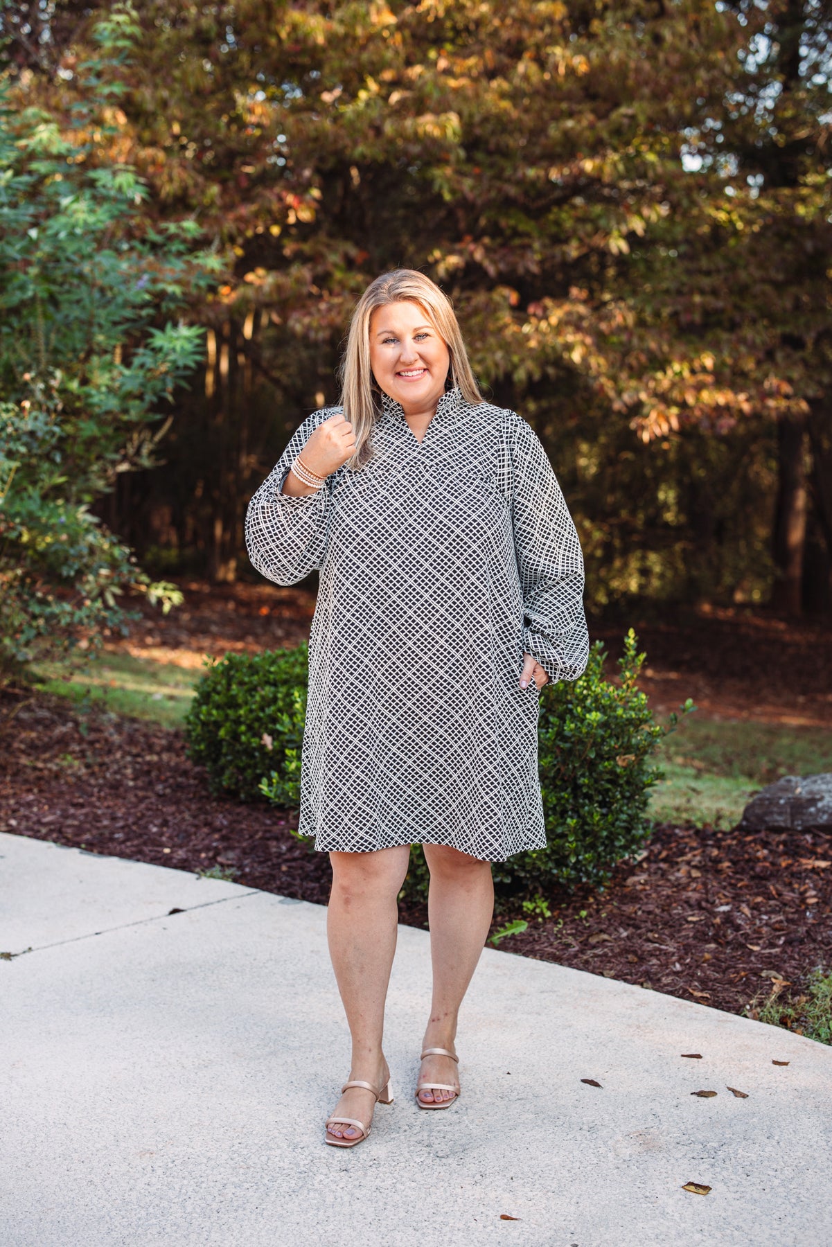 Get ready to steal the show in our Square Print Black Babydoll Dress! With long balloon sleeves, a playful v neckline and ruffled neck detail, this dress will add just the right amount of flair to your outfit. This cutie is perfect for any occasion, whether you dress her up with heels or boots, perfect for a Holiday party!