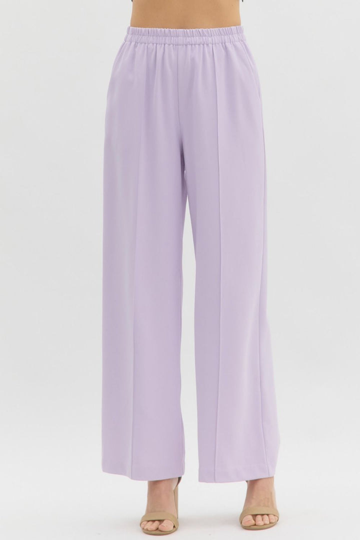 Elevate your style with our Timeless Treasure Lilac Pin tuck Pants! The lilac fabric and elastic waist are super cute, while the front pin tuck detail and faux back pockets add the look of custom tailoring. A fun upgrade to your wardrobe, for dressy or casual events! Shop the look: White Top