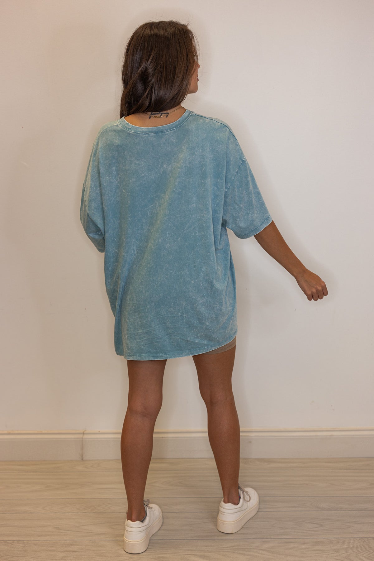 Looking for the perfect oversized tee that's both comfy and stylish? This Washed Dusty Teal Boyfriend Tee has you covered! With a light acid washed finish, round neck, and drop shoulder design, this shirt is both trendy and relaxed. This top is perfect to pair with denim shorts and bikers this summer. Perfect for any casual occasion, you'll be living in this tee.